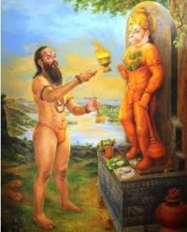 चर्चित कथा के अनुसार, एक बार गुरु समर्थ रामदास जी श्रीराम कथा सुना रहे थे तब हनुमान जी भी तपस्वी भेष बदलकर सामने बैठे हुए थे। रामकथा के दौरान जब गुरु समर्थ रामदास ने कहा कि हनुमान जी ने अशोक वाटिका में सीताजी को देखा तब श्वेत पुष्प खिले हुए थे। तब हनुमानजी ने आपत्ति जताते हुए कहा कि नहीं, लाल पुष्प थे। इसके बाद रामदास जी ने अपनी दिव्य दृष्टि से सत्य सिद्ध किया और रामजी के हस्तक्षेप से हनुमान जी ने क्षमा मांगी। हनुमान जी के अवतार माने जाने वाले गुरु समर्थ रामदास महाराष्ट्र में 11 हनुमान (मारुति) मंदिरों की स्थापना की, जो युवाओं के लिए स्वास्थ्य और राष्ट्र सेवा के प्रेरणा स्रोत बने।