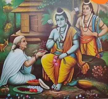 श्रीराम और लक्ष्मण के आगमन पर माता शबरी ने उन्हें मीठे बेर खिलाए। किन्तु भगवान श्रीराम और लक्ष्मण जब ऋष्यमुख पर्वत के नजदीक माता शबरी के आश्रम आए तो उन्होंने सर्वप्रथम एक दिव्य विभूति को तपस्या करते देखा। भगवान श्रीराम ने माता शबरी से पूछा कि वह कौन है?
