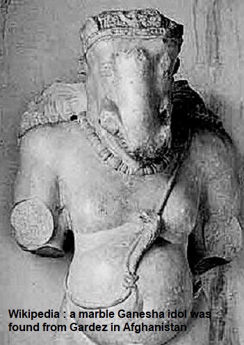 11वीं सदी में इस्लामिक आक्रान्ताओं के द्वारा अफगानिस्तान में अधिकांश हिन्दू मंदिरों को नष्ट कर दिया गया या फिर मस्जिदों में परिवर्तित कर दिया गया। अफगानिस्तान के बामियान, जलालाबाद, बगराम, काबुल, बल्ख में ऐसे ऐतिहासिक स्रोत अभी भी मौजूद हैं जो यह साबित करते हैं कि यहां कभी मूर्तिपूजा करने वाले भारतीयों का निवास था। बतौर उदाहरण- अफगानिस्थान के गरदेज से प्राप्त 5वीं शताब्दी में बनी भगवान गणेश की संगमरमर की मूर्ति जो कि खंडित अवस्था में काबुल के दरगाह पीर रतन नाथ में अभी भी संरक्षित है। महागणेश की इस उत्कृष्ट और सुन्दर मूर्ति को हेफथलाइट् वंश के शासक खिंगल ने स्थापित किया था। इसके बाद 9वीं सदी का एकमुखी शिवलिंग तथा गजनी में प्राप्त दूसरी सदी का मां दुर्गा का शीश जो काबुल के संग्रहालय में संरक्षित है।