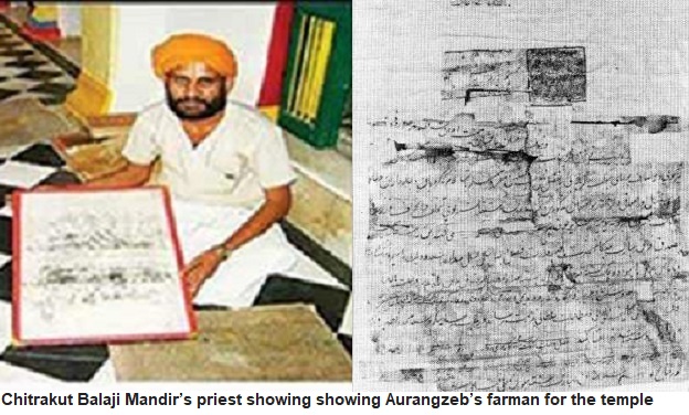 चित्रकूट के बालाजी मंदिर में भगवान बालाजी की एक सोने की मूर्ति है। मंदिर में स्थापित इस मूर्ति की महत्ता को लेकर स्थानीय लोग गर्व करते हैं लेकिन औरंगजेब द्वारा जारी फरमान भी इस मंदिर के लिए उतना ही महत्व रखता है। फरमान के मुताबिक मंदिर में भोग-प्रसाद के लिए औरंगजेब ने अपने खजाने से प्रतिदिन एक रुपये देने की व्यवस्था की थी। इसके साथ ही बालाजी मंदिर के रखरखाव के लिए 8 गांवों में 330 बीघा जमीन दान की थी। आज की तारीख में इन गांवों के नाम इस प्रकार हैं- हमुठा, चित्रकूट, रोदरा, सरया, मदरी, जारवा और दोहरिया।