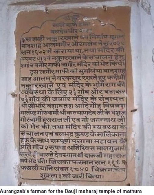 औरंगजेब के फरमान में क्या लिखा है -