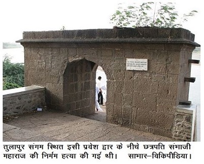 इतनी यातनाएं देने के बाद मार्च 1689 में तुलापुर में इन्द्रायणी और भीमानदी के संगम स्थल पर बने प्रवेश द्वार पर सम्भाजी महाराज की निर्मम हत्या कर दी गई। इतिहासकार एल.पी. शर्मा के अनुसार, “सम्भाजी महाराज के शरीर के टुकड़े-टुकड़े करके कुत्तों को डाल दिए गए। वहीं कुछ विद्वानों का मानना है कि सम्भाजी के शव को तुला नदी में फेंक दिया गया। जबकि कुछ लोगों का कहना है कि सम्भाजी महाराज के शव को सी कर अंतिम संस्कार कर दिया गया। इस प्रकार छत्रपति शिवाजी महाराज के पुत्र सम्भाजी महाराज का बेहद दुखद अंत हुआ।