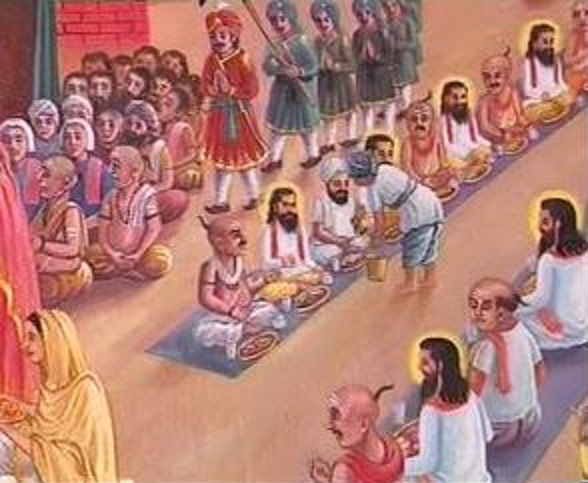 वैवाहिक कार्यक्रम के दौरान संत रैदास ने जैसे ही बतौर अतिथि महल में प्रवेश किया तब यह दृश्य देखकर ब्राह्मणों ने कहा कि यदि तुम्हारे गुरू में शक्ति है तो अपनी शक्ति का प्रमाण दें। संत रैदास ने मीरा और रानी झाली से कहा कि अपनी आंखे बंद कर लो सब ठीक हो जाएगा। इसके बाद दरबार में बैठे हर एक के बाद एक ब्राह्मण को हर जगह केवल संत रैदास ही दिखाई देने लगे। ब्राह्मणों ने यह दृश्य देखकर एक मत से स्वीकार कर लिया कि संत रैदास कोई मामूली संत नहीं हैं।