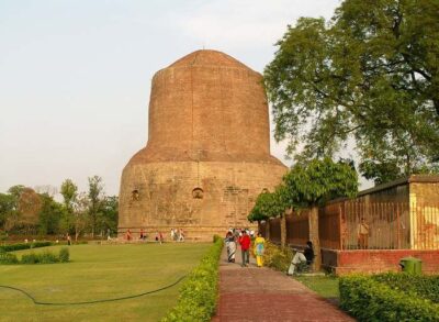 बौद्ध संघ में प्रवेश सर्वप्रथम सारनाथ से ही प्रारम्भ हुआ। वाराणसी स्थित सारनाथ का धमेख स्तूप भगवान बुद्ध के आठ महास्थलों में से एक है। धमेख स्तूप में भगवान बुद्ध के अवशेष रखे हुए हैं। धमेख स्तूप का निर्माण सम्राट अशोक ने 249 ईसा पूर्व में करवाया था। ईंट,रोड़ी और पत्थरों से निर्मित धमेख स्तूप के निचले तल में शानदार फूलों की नक्काशी देखते ही बनती है।