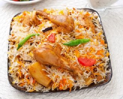 बासमती चावल, मांस तथा सुगन्धित मसालों में जायफल, जावित्री, काली मिर्च, लौंग, दालचीनी बड़ी और छोटी इलायची, तेजपत्ता, धनिया के अतिरिक्त अदरक, लहसुन, प्याज के अतिरिक्त देशी घी से तैयार बिरयानी का स्वाद लाजवाब होता है। इस बेहद लजीज पकवान को यदि दही चट्नी अथवा रायता, कॉरमा, करी, उबले हुए अंडे और सलाद के साथ परोसा जाए तो खाने का मजा दोगुना हो जाता है।