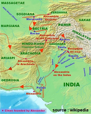 सिकन्दर ने ईरान के हखमनी साम्राज्य को ध्वस्त करने के बाद 326 ई. पूर्व के बसन्त के अन्त में एक विशाल सेना लेकर भारत की तरफ प्रस्थान किया। महान दार्शनिक अरस्तु के शिष्य सिकन्दर ने बल्ख (बैक्ट्रिया) तथा काबुल को जीतते हुए हिन्दुकुश पर्वत पारकर भारत पर आक्रमण किया।