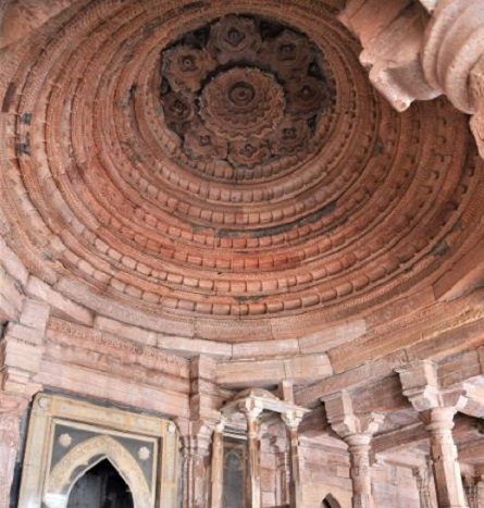 2012 में रॉयल एशियाटिक सोसाइटी में प्रकाशित माइकल विलिस के रिसर्च पेपर ' धार, भोज एंड सरस्वती : फ्रॉम इंडोलॉजी टू पॉलिटिकल माइथोलॉजी एंड बैक' के मुताबिक, इस इमारत को बनाने में कई तरह के खम्भों का इस्तेमाल किया गया। यहां फ़र्श पर खुदी पट्टियों और दीवारों पर उकेरी चीजें अब भी देखी जा सकती हैं। ये दिखाता है कि इस इमारत के लिए इस्तेमाल की गई सामग्रियां एक बड़े क्षेत्र के पुराने स्थलों से जमा की गई थीं।"7