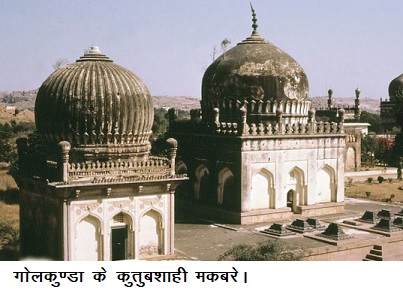 — कुतुबशाही साम्राज्य की प्रारम्भिक राजधानी गोलकुण्डा ‘हीरे’ का विश्व प्रसिद्ध बाजार तथा मछलीपट्टनम एक प्रसिद्ध बन्दरगाह था।