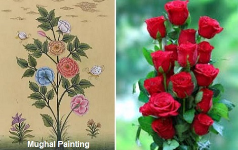 यह सच है कि भारत में गुलाब को लोकप्रिय बनाने का श्रेय मुगल बादशाहों को जाता है। मुगल लघुचित्रों में अकबर, जहांगीर, शाहजहां से लेकर दाराशिकोह तथा औरंगजेब तक को गुलाब के साथ दर्शाया गया है। मुगलों ने गुलाब को अपनी कला-संस्कृति में शामिल किया। बादशाह शाहजहां अपने चित्रों में अक्सर उंगलियों के बीच गुलाब लिए नजर आते हैं, इसके जरिए शाहजहां ने अपनी छवि ‘मानवतावादी राजा’ के रूप में प्रदर्शित करने की कोशिश की है।