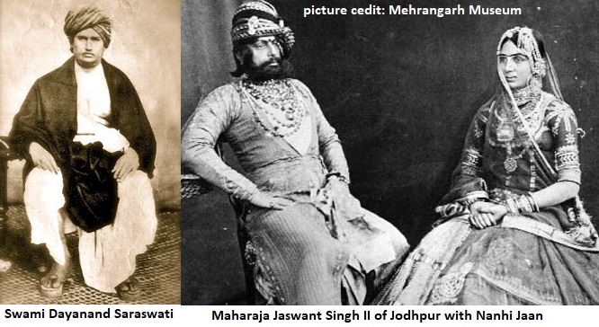 दरअसल जोधपुर के महाराजा जसवन्त सिंह का नन्ही जान नाम की एक वेश्या से बड़ा गहरा संबंध था। एक दिन स्वामी दयानन्द सरस्वती निश्चित समय पर दरबार में पहुंचे, संयोगवश उसी समय नन्ही जान महाराजा के पास आई हुई थी। स्वामी दयानन्द सरस्वती के दरबार में पधारने का समय जानकर महाराजा उसे रवाना ही कर रहे थे, उसी समय अपने सम्मुख स्वामी दयानन्द सरस्वती को देखकर महाराजा एकदम से घबरा गए और उन्होंने नन्ही जान की पालकी को स्वयं ही कन्धा देकर उठवा दिया।