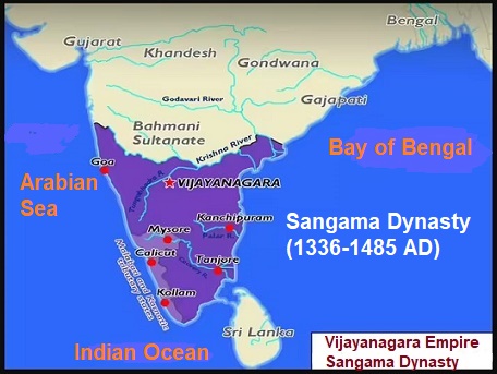 हरिहर एवं बुक्का बन्धु संगम के पुत्र थे और उन्होंने अपने पिता के नाम पर अपने वंश की स्थापना की। अत: 1336 ई. में स्थापित विजयनगर साम्राज्य के प्रथम वंश को ‘संगम वंश’ कहा जाता है। संगम वंश ने तकरीबन 150 वर्ष तक शासन किया। विजयनगर का वर्तमान नाम हम्पी (हस्तिनावती) है। हम्पी (हस्तिनावती) विजयनगर की पुरानी राजधानी का प्रतिनिधित्व करता है। विजयनगर साम्राज्य की राजधानियां थीं - अनेगोण्डी, विजयनगर, बेनुगोण्डा तथा चन्द्रगिरि।